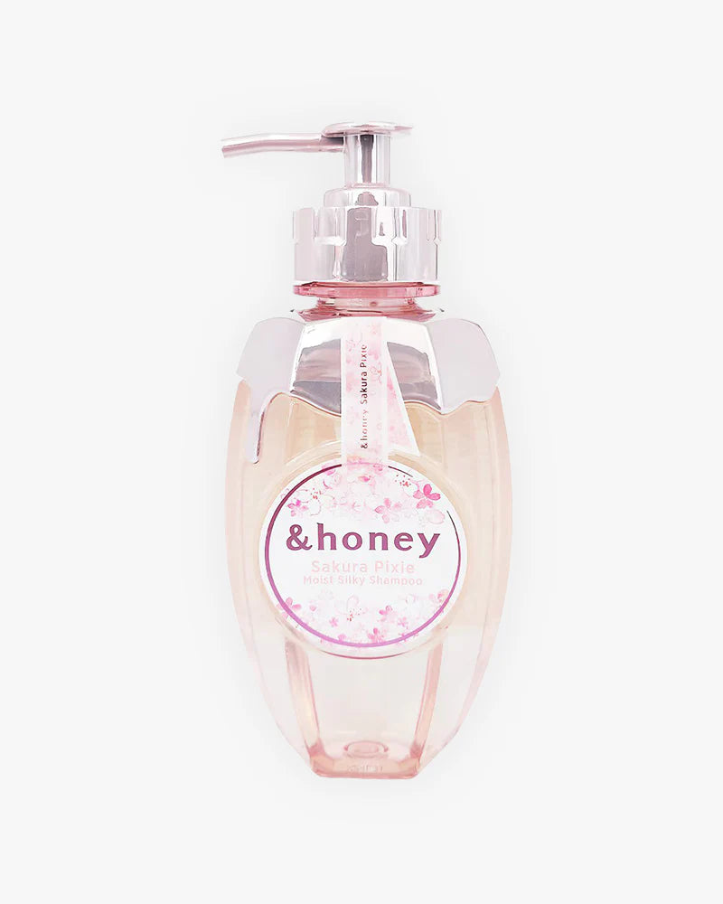 Limited Sakura edition of the Pixie “moist-silky” line, formulated to smooth tangles and flyaways while leaving hair soft and sleek. Cleanses gently with honey-based moisture care and a fresh Yaezakura (double-cherry blossom) honey scent. Best for hair that gets dry, frizzy, or easily knotted.