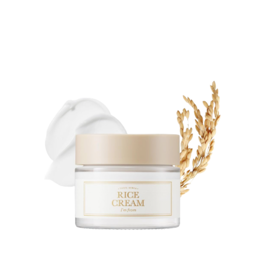I'm From Rice Cream is a gentle and nourishing moisturizer from the Korean skincare brand I'm From, known for using high-quality, locally-sourced ingredients. This cream is enriched with 41% rice bran extract, a powerful ingredient traditionally used in Korean beauty for its brightening and hydrating properties