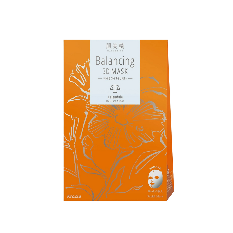 A 3D-fitting sheet mask for “unstable” or combo skin that swings between dry and oily. The Calendula formula helps balance moisture and calm, while a soybean-seed extract and the brand’s “Bihada Kime EX” blend (loquat leaf, coix seed, yuzu-ceramide, peony) support a smoother look. Uses a premium, close-adhesion 3D sheet and a rice-ferment penetrant to help the essence absorb.