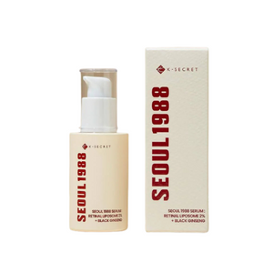 The KSECRET SEOUL 1988 Serum: Retinal Liposome 2% + Black Ginseng is a powerful anti-aging treatment serum that combines stabilized retinal with antioxidant-rich black ginseng to reduce wrinkles, fade dark spots, and restore radiance. Designed for those targeting advanced signs of aging, uneven tone, and dullness, it rejuvenates the skin while promoting firmness and smooth texture.