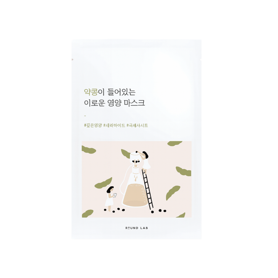 Creamy, nourishing sheet mask featuring black soybean (Yakkong) extract, marshmallow (Althaea rosea) flower, ceramide NP, adenosine, and a touch of caffeine to moisturize, firm, and support the skin barrier. The essence is listed as unscented on the brand page.