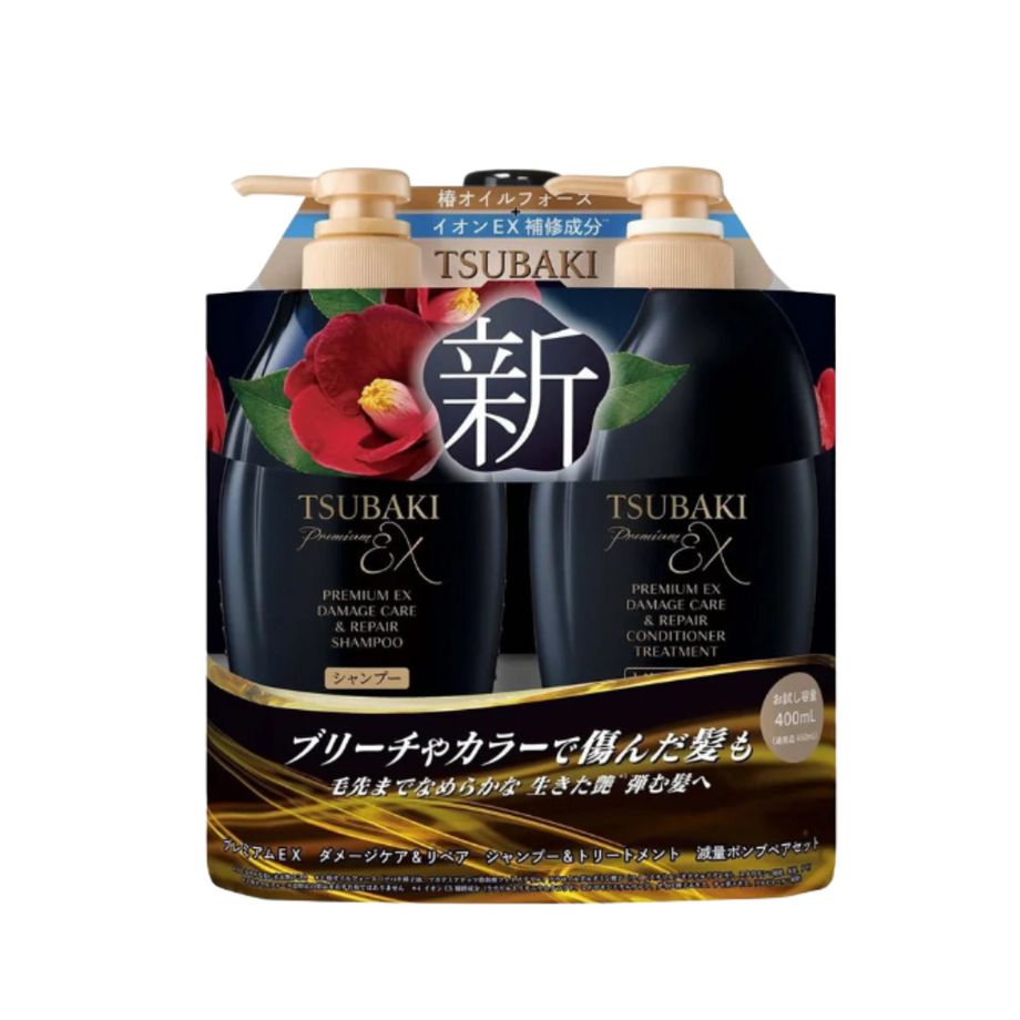Shiseido TSUBAKI Premium EX Damage Care & Repair Hair Care Set is formulated for dry, damaged, and chemically treated hair. It nourishes and strengthens hair from root to tip, helping to repair damage, reduce breakage, and improve overall hair resilience. Infused with Camellia oil, silk essence, and other moisturizing ingredients, it provides intense hydration, smoothness, and shine while protecting hair from external stressors.
