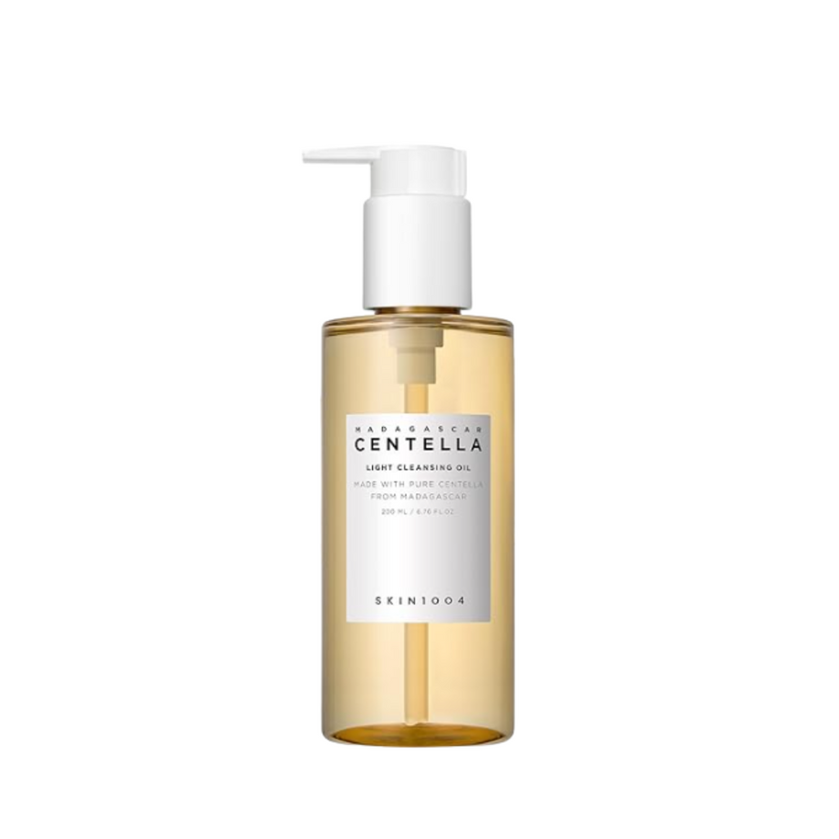 The SKIN1004 Madagascar Centella Light Cleansing Oil is a gentle yet effective oil cleanser designed to remove makeup, sunscreen, and impurities without stripping the skin's natural moisture. Infused with 10,000 ppm of Centella Asiatica extract, it soothes and strengthens the skin barrier. The formula includes six botanical oils—sunflower seed oil, olive fruit oil, jojoba seed oil, bergamot fruit oil, geranium flower oil, and rose flower oil—that work together to cleanse and hydrate the skin. Its lightweight texture emulsifies upon contact with water, transforming into a milky consistency that rinses off easily, leaving the skin feeling refreshed and not greasy.